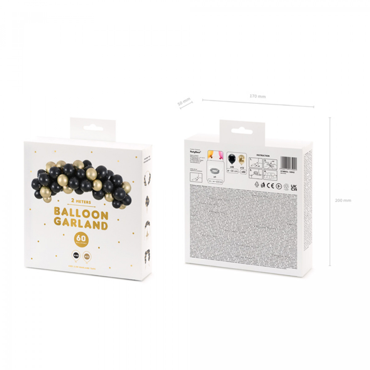 - Balenie obsahuje 60 balónov: 48 čiernych a 12 lesklých zlatých.