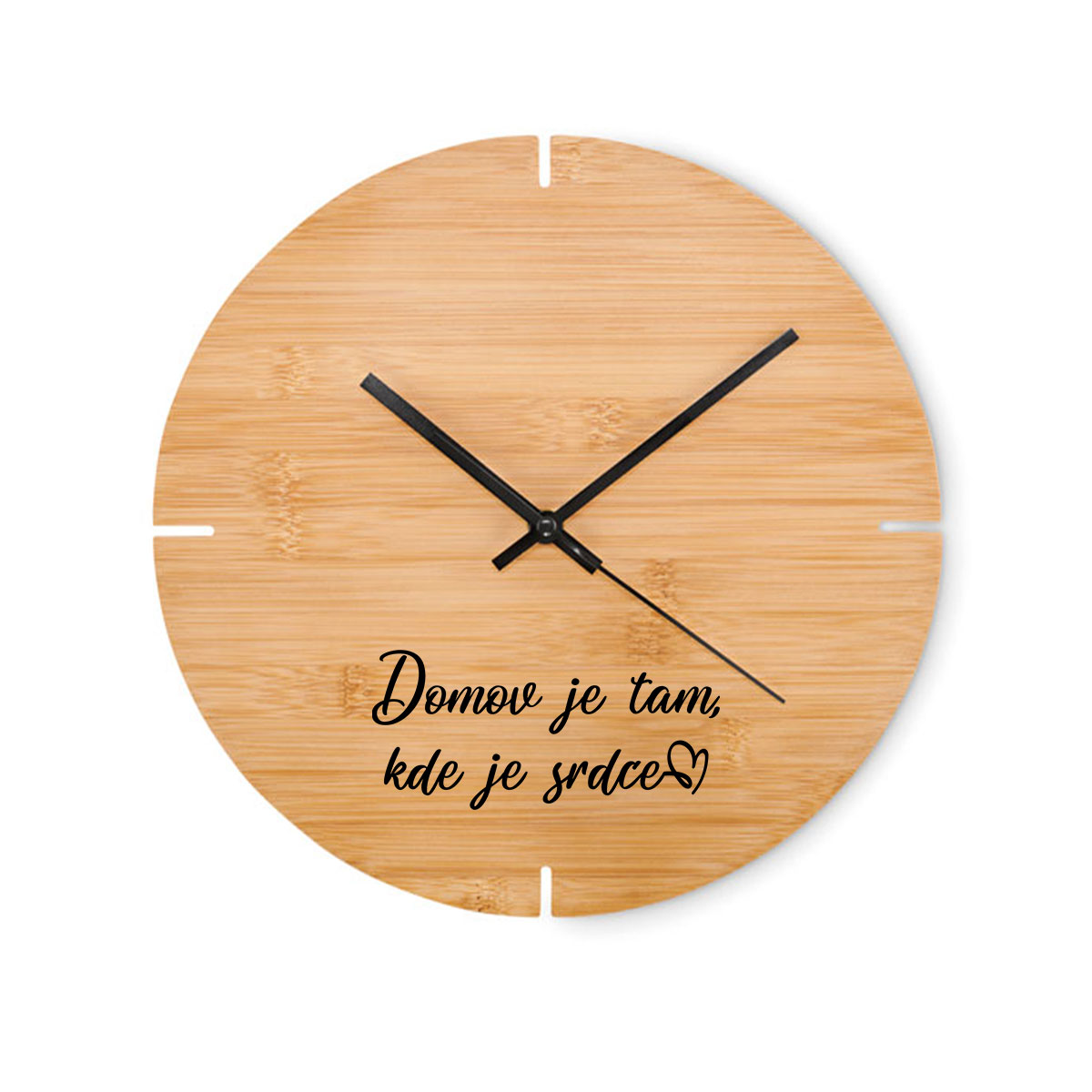 Bambusové nástenné hodiny "Domov je tam, kde je srdiečko"