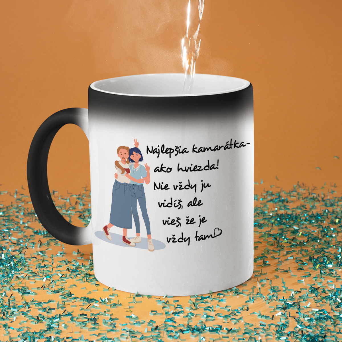 - Magický hrnček – Nie nadarmo nazývaný magickým! Na prvý pohľad je to jednoduchý čierny hrnček, ale keď sa doň naleje horúca voda, zmení sa na biely a odhalí skrytú potlač. Je to skutočné prekvapenie a malý zázrak na každý deň!