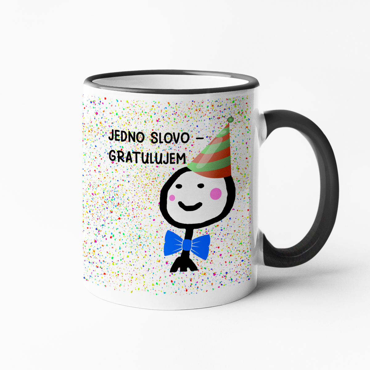 - Hrnček s farebným okrajom – Tento model vyniká svojím štýlovým dizajnom: jemne farebný okraj a uško, ktoré pridávajú hravosť a dokonale zvýraznia jedinečný nápis.