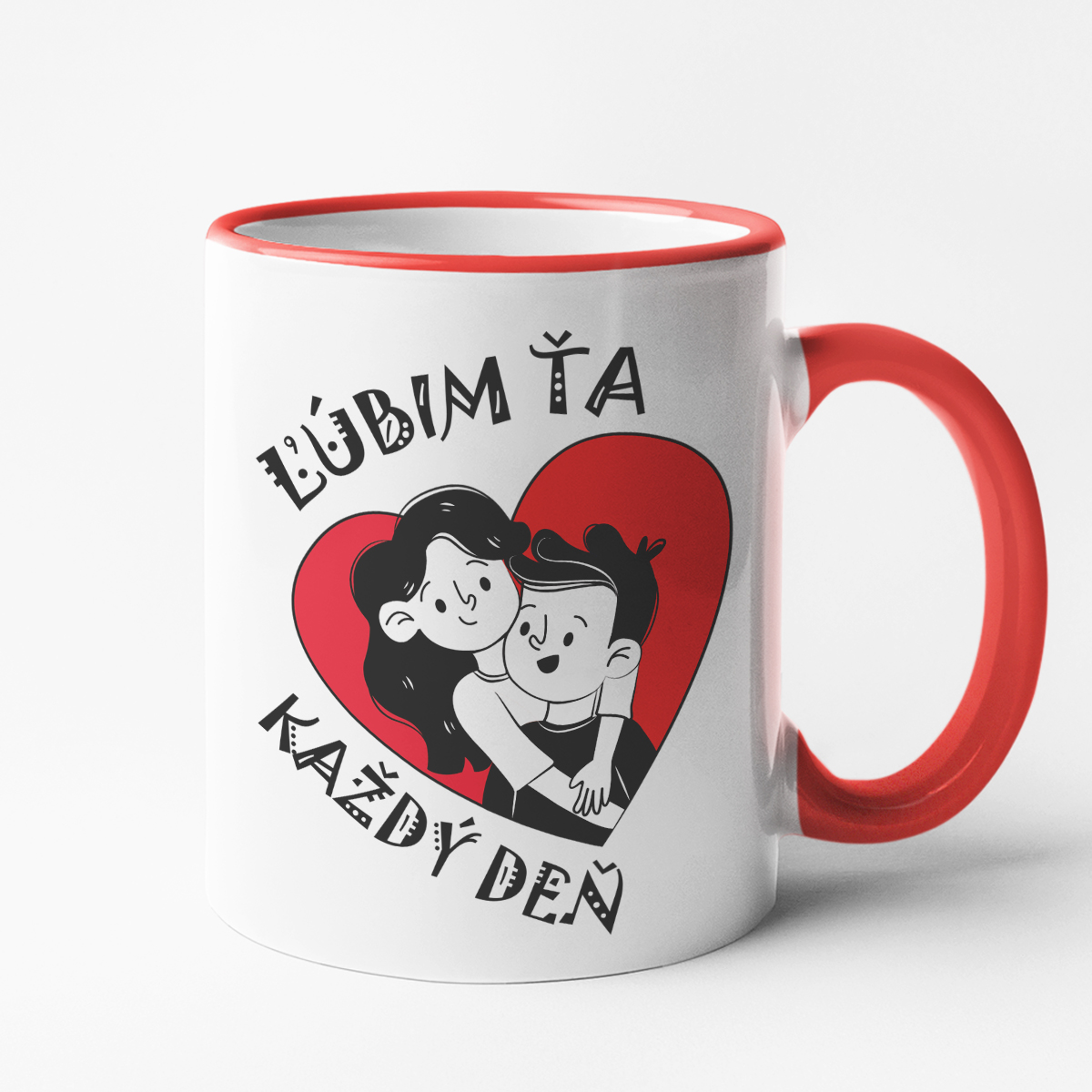 - Hrnček s farebným okrajom – Tento model vyniká svojím štýlovým dizajnom: jemne farebný okraj a uško, ktoré pridávajú hravosť a dokonale zvýraznia jedinečný nápis.