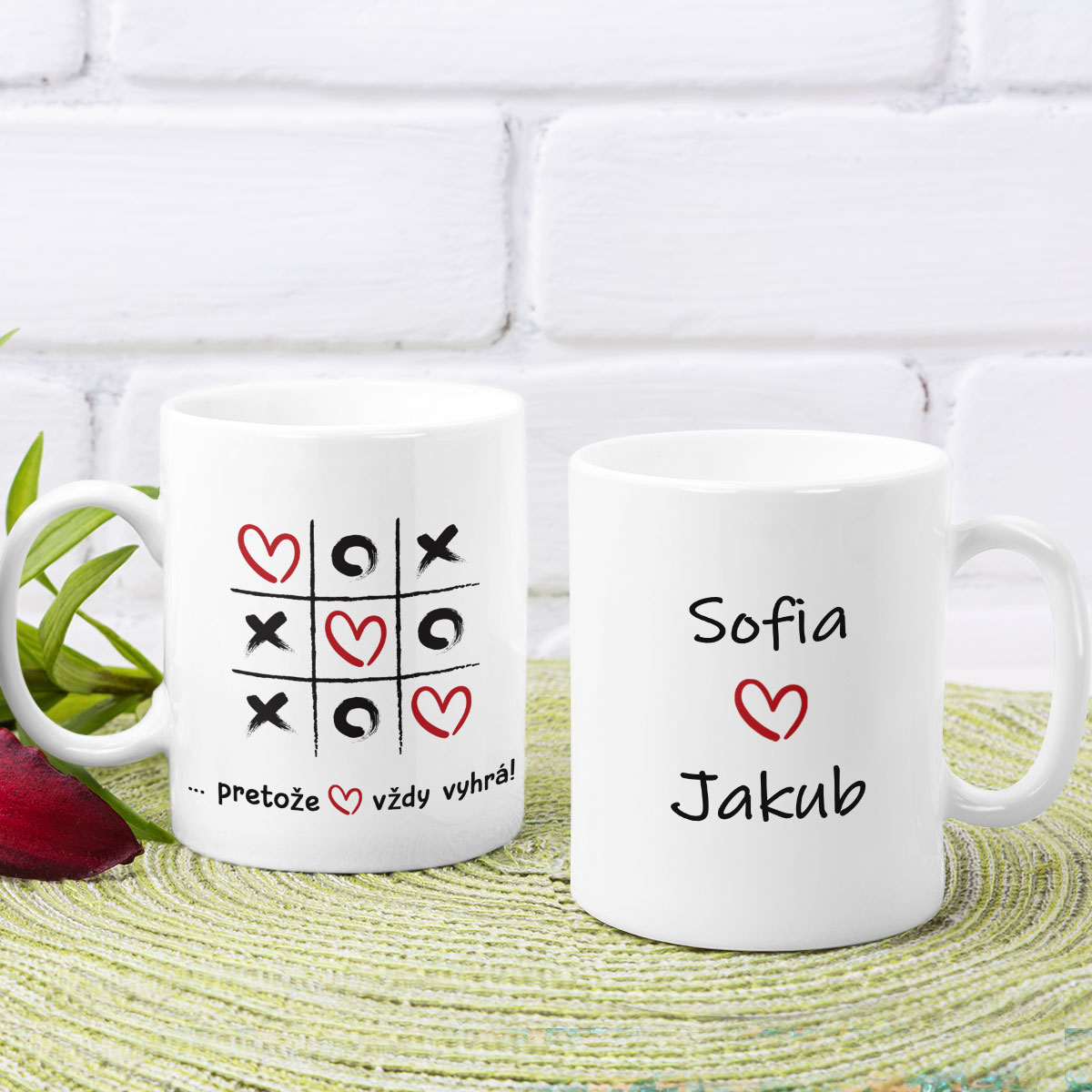 Hrnček "Láska vždy zvíťazí" su pasirinktais vardais