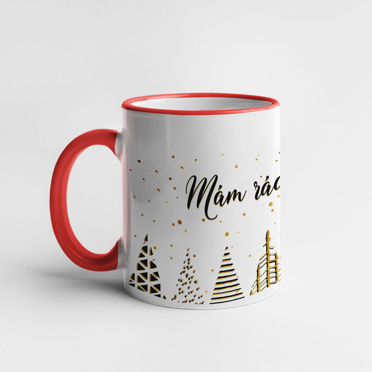 - Hrnček s farebným okrajom – Tento model vyniká svojím štýlovým dizajnom: jemne farebný okraj a uško, ktoré pridávajú hravosť a dokonale zvýraznia jedinečný nápis.