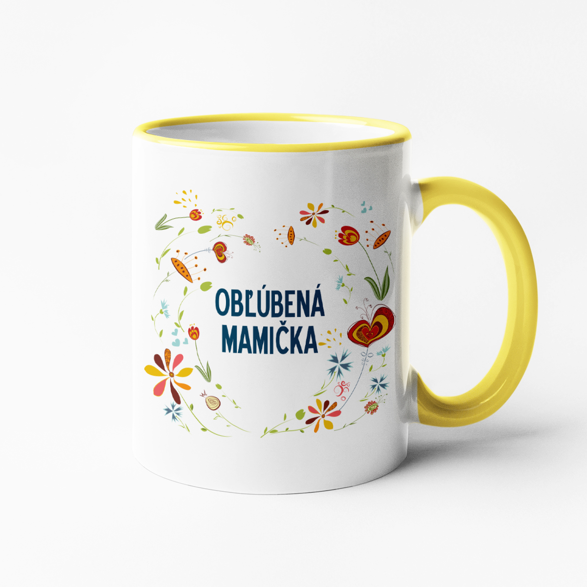 - Hrnček s farebným okrajom – Tento model vyniká svojím štýlovým dizajnom: jemne farebný okraj a uško, ktoré pridávajú hravosť a dokonale zvýraznia jedinečný nápis.
