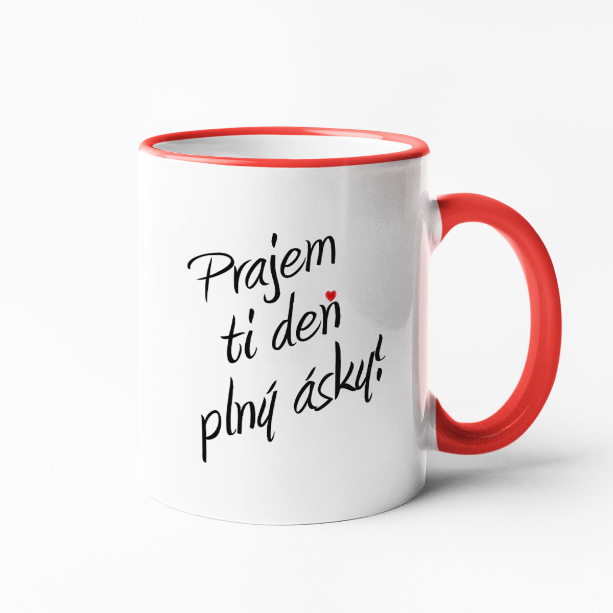 - Hrnček s farebným okrajom – Tento model vyniká svojím štýlovým dizajnom: jemne farebný okraj a uško, ktoré pridávajú hravosť a dokonale zvýraznia jedinečný nápis.