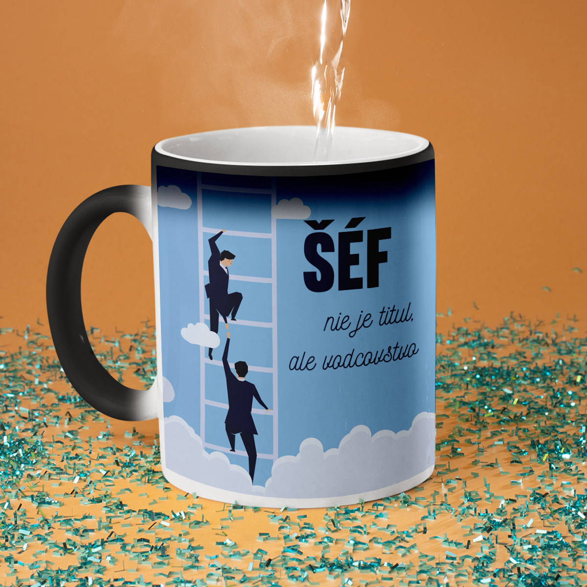 - Magický hrnček – Nie nadarmo nazývaný magickým! Na prvý pohľad je to jednoduchý čierny hrnček, ale keď sa doň naleje horúca voda, zmení sa na biely a odhalí skrytú potlač. Je to skutočné prekvapenie a malý zázrak na každý deň!