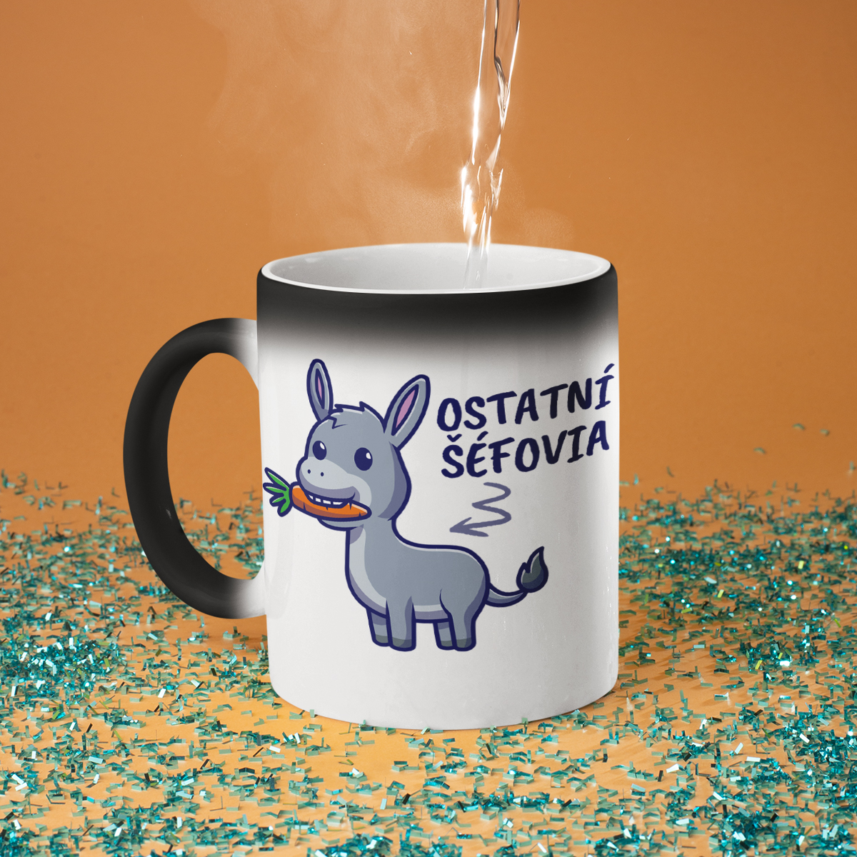 - Magický hrnček – Nie nadarmo nazývaný magickým! Na prvý pohľad je to jednoduchý čierny hrnček, ale keď sa doň naleje horúca voda, zmení sa na biely a odhalí skrytú potlač. Je to skutočné prekvapenie a malý zázrak na každý deň!