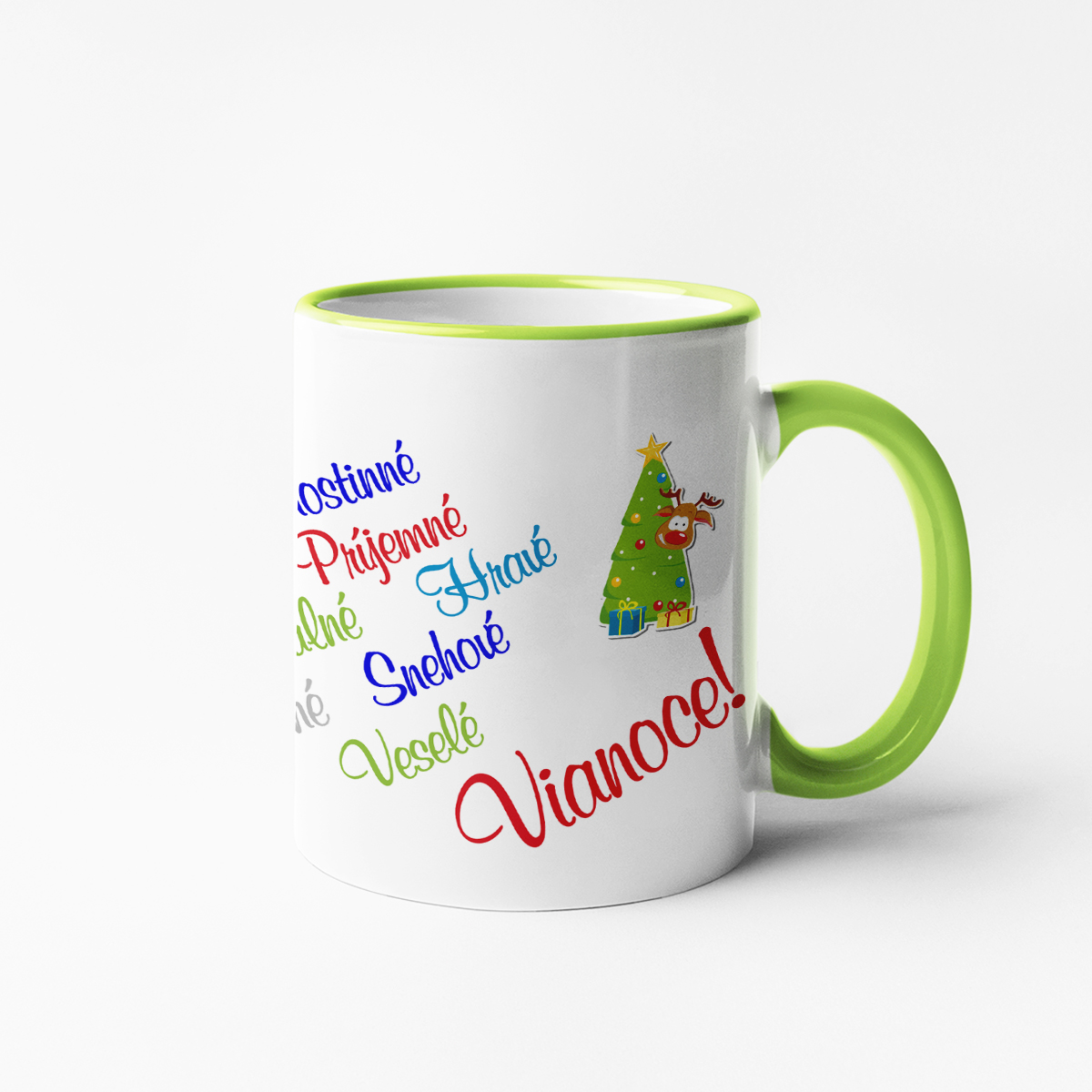 - Hrnček s farebným okrajom – Tento model vyniká svojím štýlovým dizajnom: jemne farebný okraj a uško, ktoré pridávajú hravosť a dokonale zvýraznia jedinečný nápis.