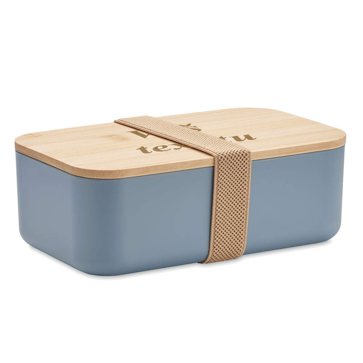 Vyrobená z PLA (plastu na báze kukurice) s bambusovým viečkom. Elastická páska z RPET zaisťuje, že krabička zostane pevne uzavretá.