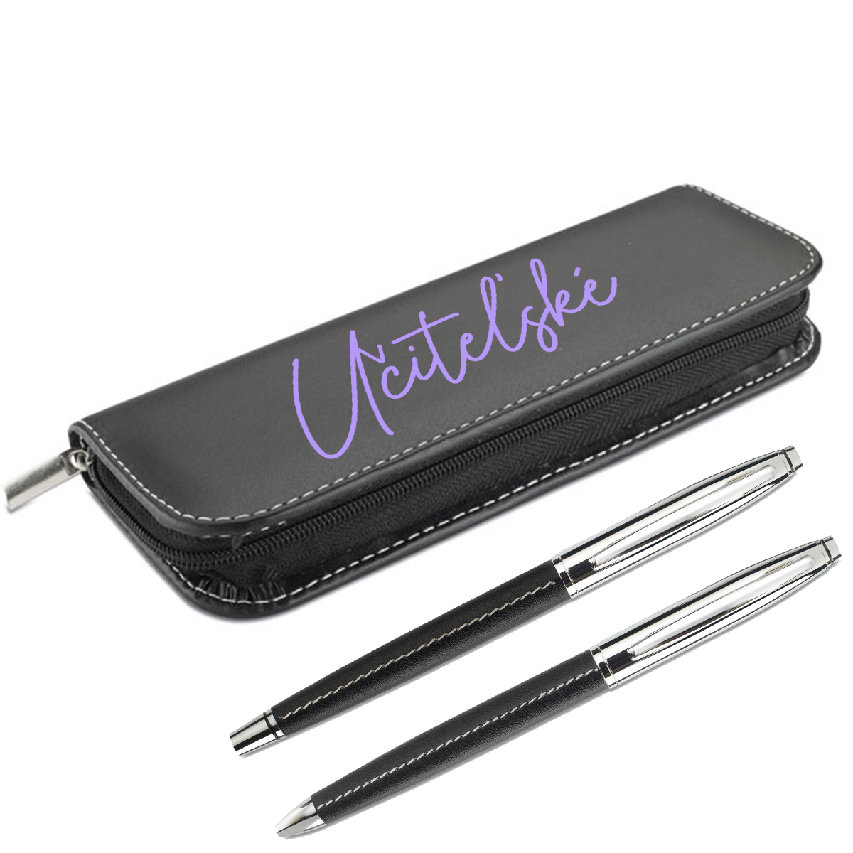 Perá sú zabalené v špeciálnom puzdre z ekokože s nápisom "Učiteľské".