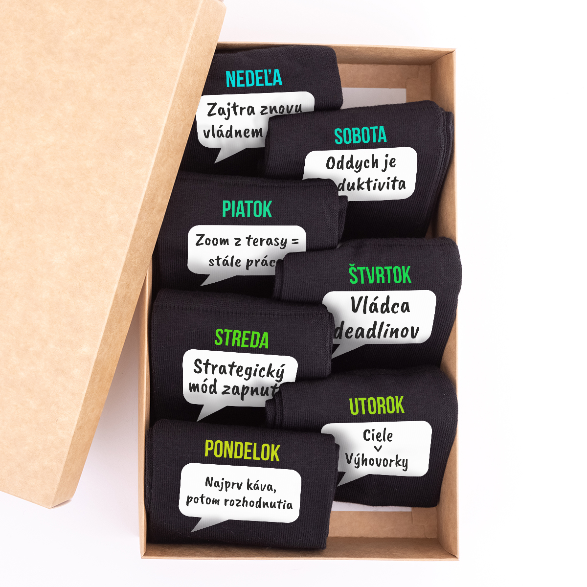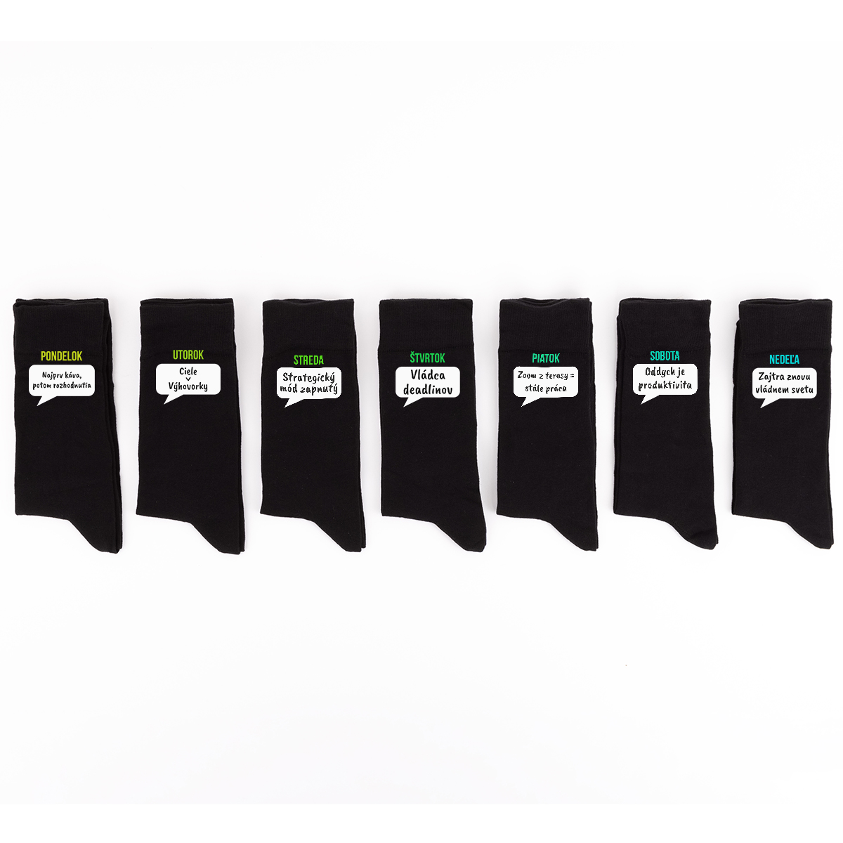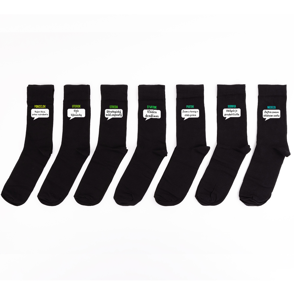 - Sada obsahuje 7 párov ponožiek s potlačou na každej ponožke (7 rôznych rozložení x 2 kusy).